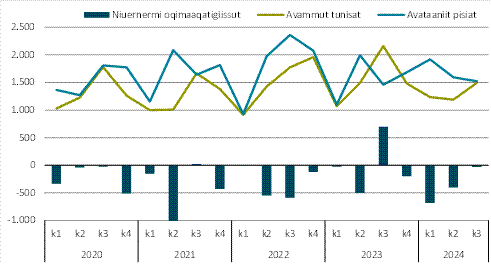 2024-mi kvartalit siulliannik pingajuannut niuernermi oqimaaqatigiissut 1.113 mio. kr.-nik taamaalilluni amigartoorfiuvoq, ukiup siuliani piffissami pineqartumut sanilliullugu 1.283 mio. kr.-nik annikinnerulluni.