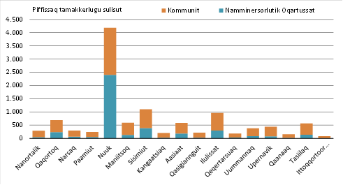 2024-mi najugaqarfimmi Nuummi piffissaq tamakkerlugu sulisut 4.181-inik amerlassuseqarput, taakkunannga Namminersorlutik Oqartussani sulisut 2.402-t kommunimilu sulisut 1.780-it. Najugaqarfimmi Ittoqqortoormiini piffissaq tamakkerlugu sulisut 86-inik amerlassuseqarput, taakkunannga arfinillit Namminersorlutik Oqartussani kiisalu 80-it kommunimi.