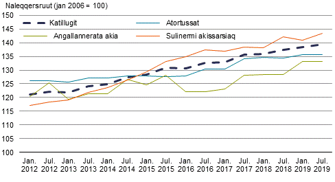 2. Sanaartornermi aningaasartuutit naleqqersuutaat sulianut immikkoortunut (jan 2006=100) juuli 2018 - juuli 2019