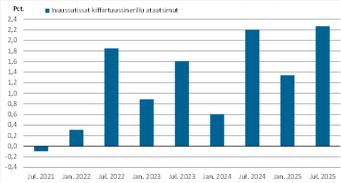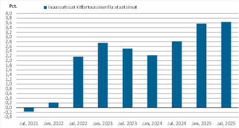 2025-mi januaarimiit 2025-mi juulimut atuisunut akit 2,3 pct.-inik qaffapput. Ukiup affaanut qaffariaammi ikummatissat akiinik qaffaanerit, ineqarnermi kiassarnermut assartuinermilu aamma aningaasartuutinut sunniuteqagaatsiartoq, peqqutaanerpaavoq. Taakkulu akit qaffasissusaannut tamakkiisumut annertuumik sunniuteqarput.