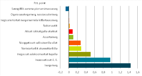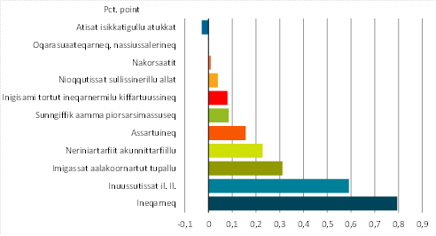 Atuisunut akini naleqqersuummi Ineqarnermut atortut nioqqutissat appariaateqarnerpaasimapput, Ineqarnermullu tunngasut nioqqutissat qaffariaateqarnerpaasimallutik. Ineqarnermut aningaasartuutini qaffariaat kiassarnermut aningaasartuutit annertunerulernerannik ikummatissalu akisunerulernerannik, ineqarnermi aningaasartuutinut sunniuteqagaatsiartunik, peqquteqarpoq.