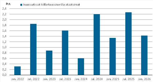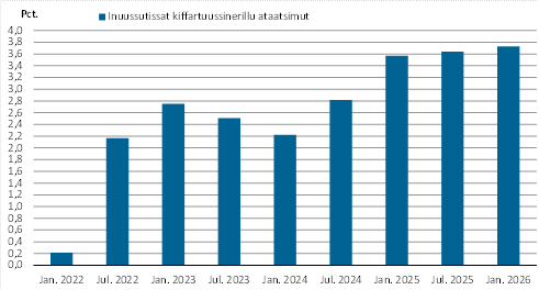 Atuisunut akit naleqqersuutaat 2025-mi januaarip aallaqqaataaniit 2026-mi januaarip aallaqqaataanut 3,7 pct.-imik qaffappoq, tamannalu nioqqutissat kiffartuussinerillu iluanni akit suli qaffakkiartornerannut takussutissaavoq.
