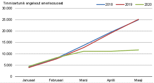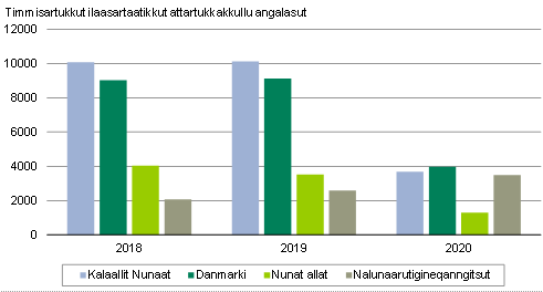 Titartagaq 1. Januaarimiit maajimut timmisartumik attartukkamik ilaasartaammillu angalasut amerlassusaat, 2018-2020