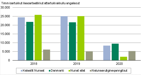 Nuna tamakkerlugu nunallu tamalaat akornanni COVID 19-imik peqquteqartumik angallattoqaqqusaajunnaarnerata kingorna timmisartumut ilaallutik angalasunut naatsorsuinerup arfineq-marlussaata takutippaa, Kalaallit Nunaanni nunanut allanut mittarfinnit arfiniliusunit timmisartumut ilaasartaammut ilaallutik angalasut 66,7 pct.-inik appariartut. Ukiullu siulianut sanilliullugu ilaasunik 47.152-inik ikileriarneruvoq.