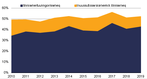 ingerlatsipput, nukappiaqqat 46 pct.-ii ingerlatsillutik. 2010-mili taamatut