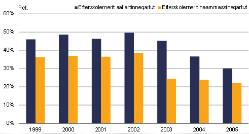 efterskolernermik aallartitsisimapput, 22 pct.-iilu efterskolernermik